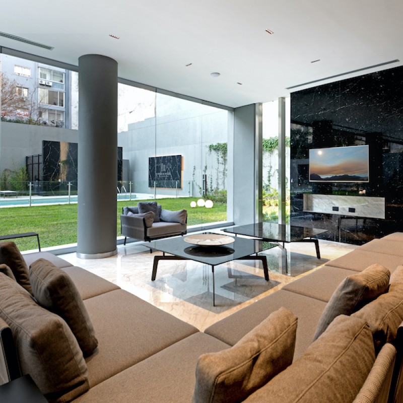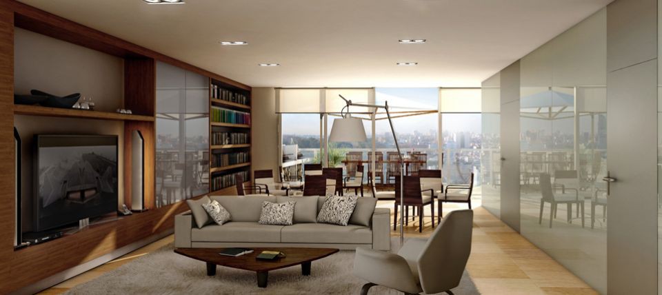 Una torre que cuenta con dos niveles de subsuelos, planta baja y 19 pisos con unidades de 2, 3 y 4 ambientes con y sin dependencia.